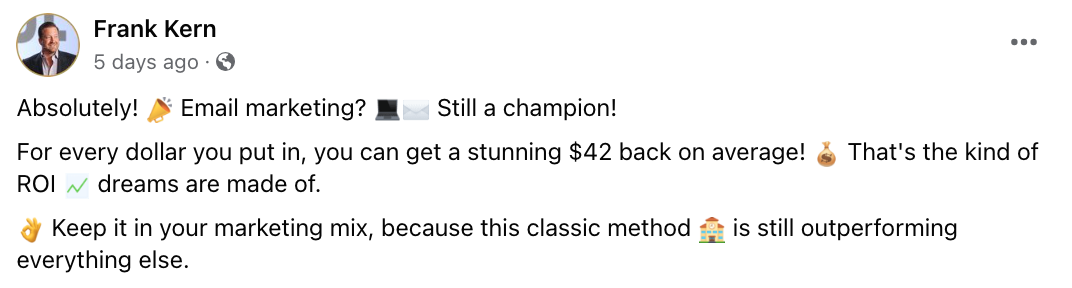 "Email Marketing? For Every Dollar You Put In, You Can Get A Stunning $42 Back On Average!"