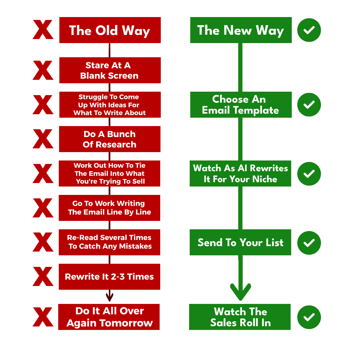 Now, you have the opportunity to duplicate the entire system I built by downloading these simple, cash generating email templates, and having AI rewrite them for any niche instantly.
